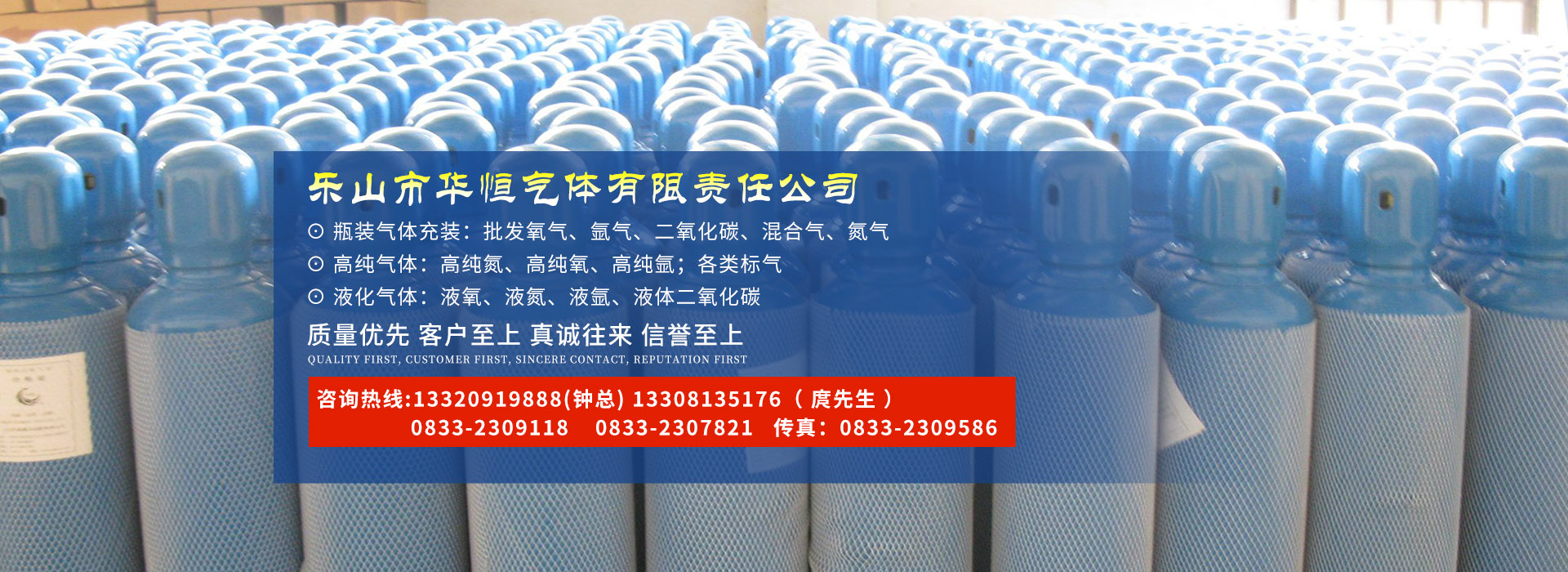樂山市華恒氣體有限責任公司位于樂山市市中區九峰鎮,挨著大佛,緊鄰樂五路,交通便利。公司成立于2004年,公司有液氧貯槽30立方一臺,液氬貯槽50立方兩臺,液體二氧化碳貯槽20立方一臺,液氮貯槽10立方一臺,危險品運輸車輛10輛,液氬低溫槽車兩臺,一臺容積23立方,一臺容積18立方,液氧低溫槽車一臺,容積18立方,貨車7輛;職工60人,高級職稱3人,特種設備持證人員46人,公司已取得充裝許可證、危險化學品經營許可證、中華人民共和國特種設備檢驗檢測機構核準證。